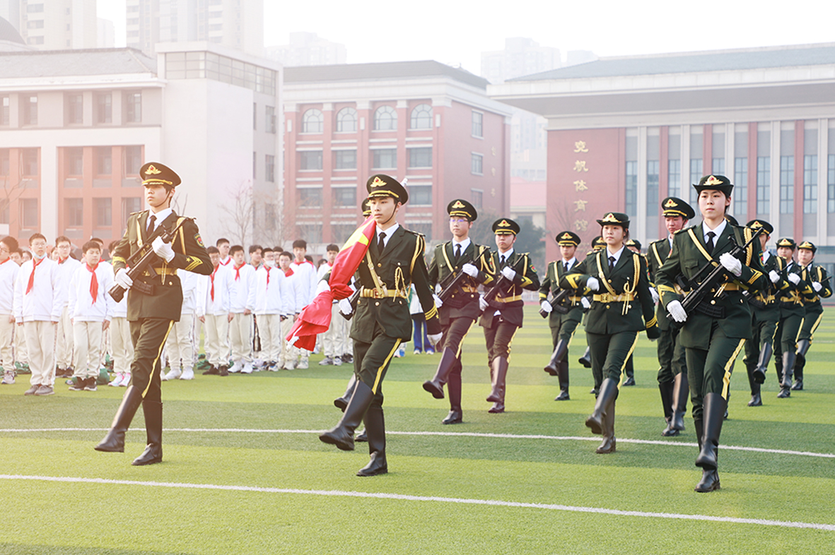 本周一,经开外国语学校周一升旗仪式如期举行。本次升旗仪式由经外高中部承办,初高中全体师生参加,高一(1)班的张苏桐同学带来国旗下讲话。