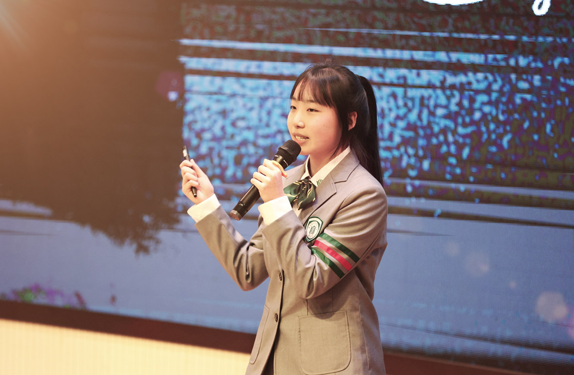 同学们的演讲主题丰富多元,有人谈全球公民意识,有人注重环境保护,有人呼吁停止网络暴力,有人喊停校园霸凌,有人探索自信的塑造,有人谈毅力的培植……同学们畅所欲言,大胆激辩,让我们看到了当代少年们由内而外散发着的自信光芒!