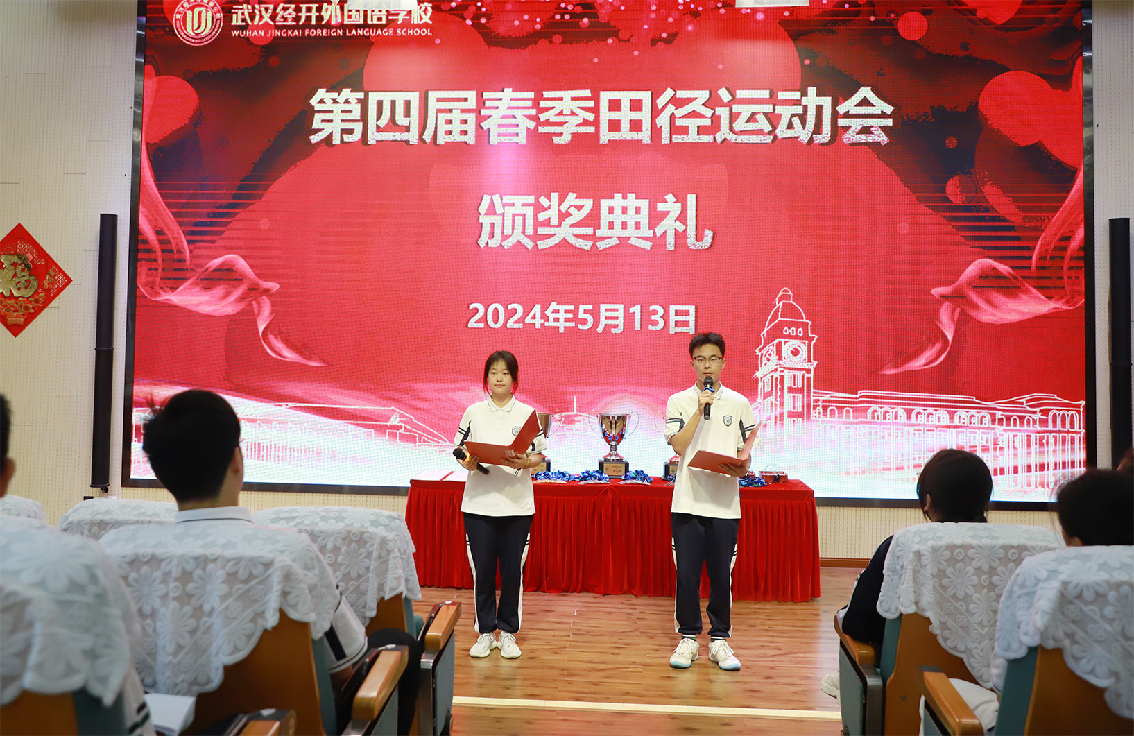 在惠风和畅、阳光明媚的五月,经外高中举行了春季田径运动会表彰大会。此次大会旨在表彰在运动会中表现出色的运动员们。随着激昂的运动会进行曲响起,颁奖典礼在报告厅正式拉开帷幕。